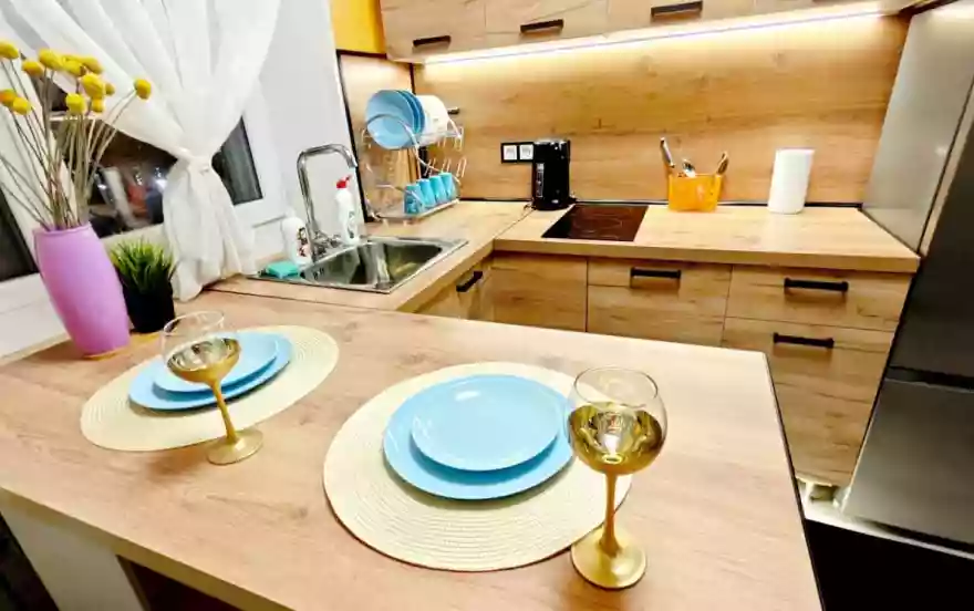 ✅Есть абсолютно все необходимое для комфортного проживания: современный телевизор, микроволновая печь, электрическая плита, чайник, холодильник, необходимая посуда, стиральная машина, водонагреватель, утюг, гладильная доска, фен.