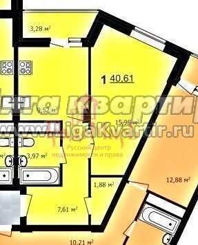 - Общая площадь: 40.6 м²