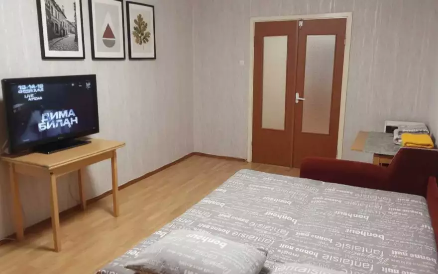 Предлагаем к бронированию 2-комнатную квартиру менее чем в 3 км от МКАД (15-20 минут транспортом до метро по данным Яндекс).