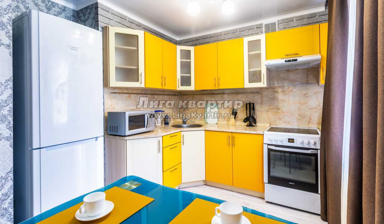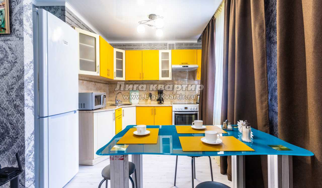 ✔ Яркий интерьер кухни настраивает на позитив и оптимизм. Она оснащена современным гарнитуром, всей необходимой бытовой техникой и полным комплектом посуды на пять персон гостей. Уютная обеденная зона гарантирует отличную трапезу и душевное чаепитие.