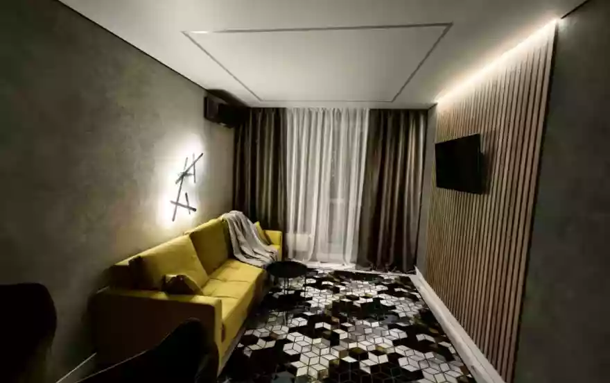 В квартире есть все необходимое для комфортного проживания: красивый и комфортный диван, удобная и стильная кровать с ортопедическим матрасом, посуда, стиральная машинка, шампунь, гель для душа, стиральный порошок, гладильная доска, утюг.