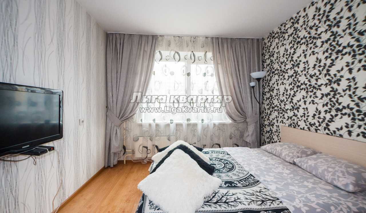 Большой встроенный кухонный гарнитур, обеденный стол, стулья, двухкамерный холодильник, СВЧ, газовая плита. Спальная: двуспальная кровать, ТВ, стенли.