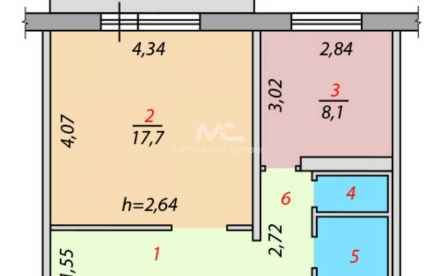 - Жилая площадь: 17.7 м²