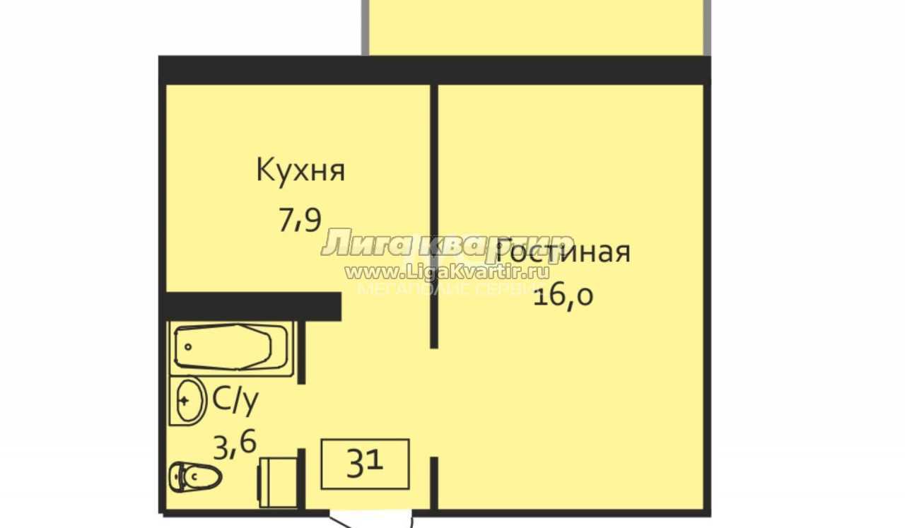 - Общая площадь: 31 м²