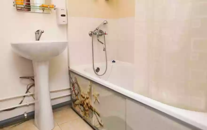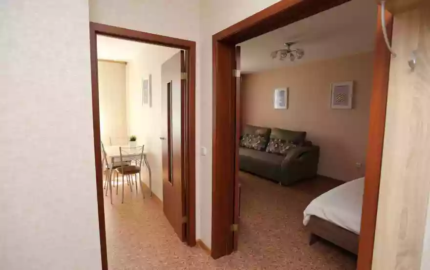 В квартире сделан свежий косметический ремонт, потому что нам важен Ваш комфорт. Гостиная укомплектована большим раскладывающимся двуспальным диваном, кроватью, шкафом, ТВ и Wi-Fi. Помимо этого кухня оснащена всей необходимой бытовой техникой: кухонной плитой, холодильником, микроволновой печью, электрическим чайником и фильтром для воды. Ванна с туалетом совмещены, отделка кафель. Есть стиральная машина автомат.