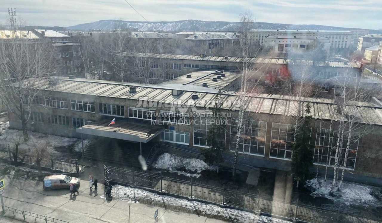 Во дворе закрытая парковка(шлагбаум), детский сад, за окном школа.