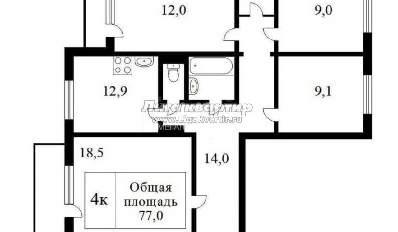 - Общая площадь: 77 м²