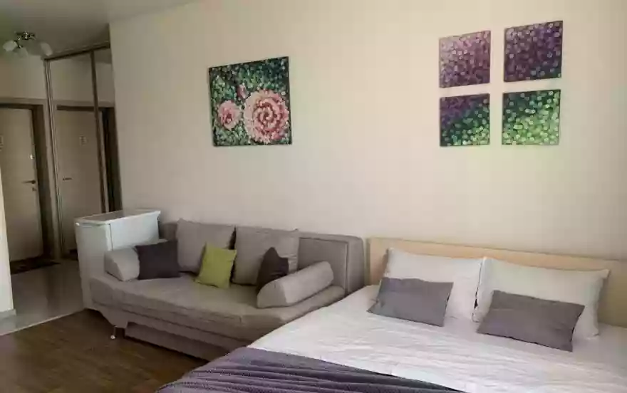 1 комнатные Апартаменты в Новом высотном доме. 30 м2 4 гостя, 1 кровать, 1 диван, 1 спальня, 5 из 25 этаж (лифт).