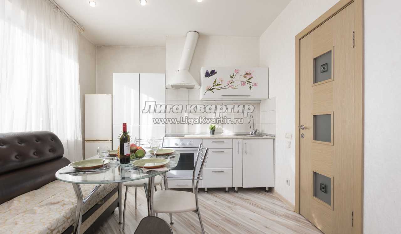 В квартире: двуспальная Кровать + угловой диван + диван + раскладушка, Теплый пол, ламинат, натяжной потолок. На кухонной зоне варочная панель, новая стиральная машинка и холодильник. Кухонный гарнитур, стол, застекленная лоджия (место для курения).