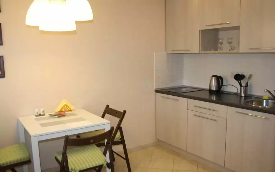 Для вас все необходимое: диван-кровать (раскладной от IKEA), TV, интернет Wi-Fi, печь, микроволновка, чайник, стиральная машина, холодильник, утюг, фен.