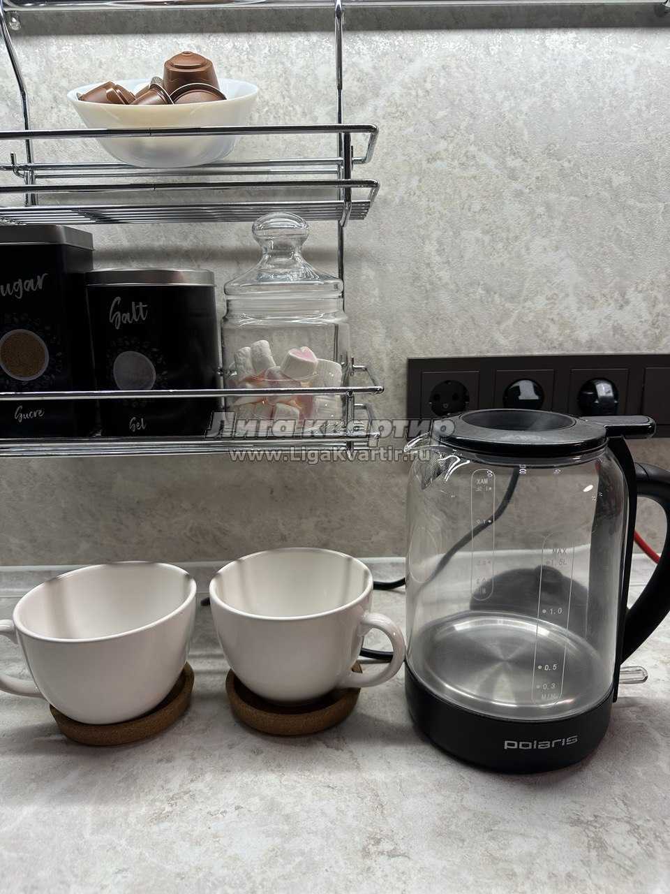 • Необходимая бытовая техника и посуда (стиральная машина+порошок, чайник, кофемашина, микровол. печь, плита, духовой шкаф, холодильник, а также посуда, бокалы, штопор и посудомоечная машина)