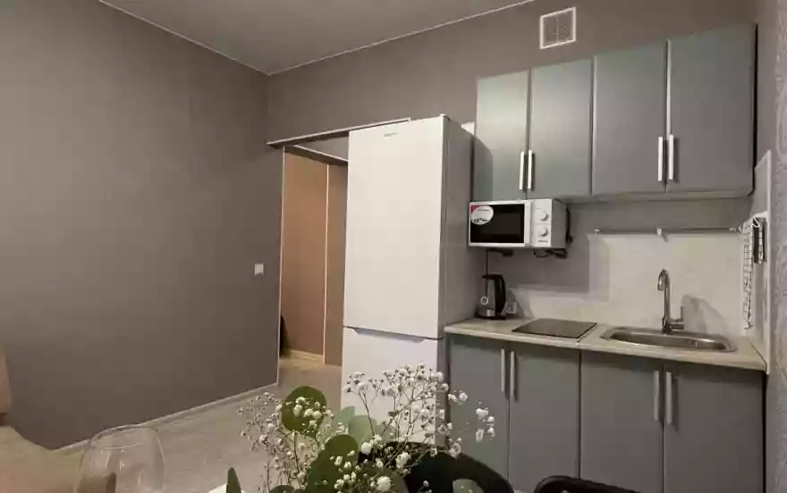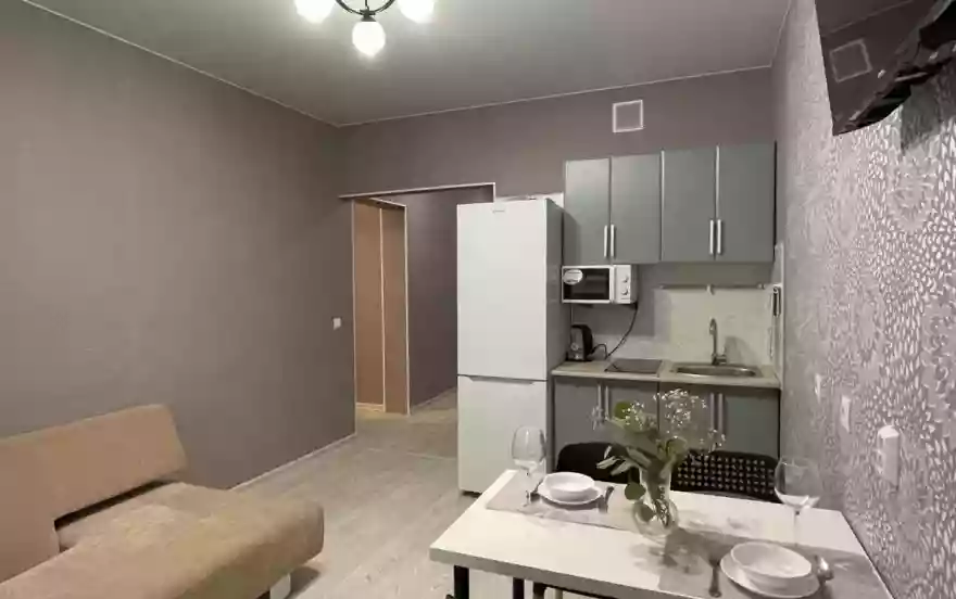 В апартаментах есть все необходимое для комфортного проживания: быт. техника, химия, плита и вся посуда, необходимая для приготовления и принятия пищи, утюг, стиральная машина, фен, высокоскоростной интернет wi-fi, кабельное ТВ, натяжной потолок, двухместная евро-кровать, удобный просторный угловой диван в спальне и современный эргономичный диван в кухне-гостиной, всегда свежее комфортное белое постельное бельё и полотенца, необходимые средства индивидуальной гигиены - гель, шампунь, тапочки и т.д.