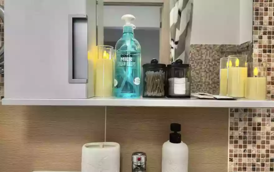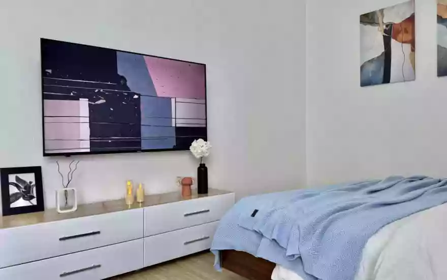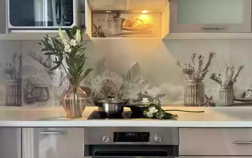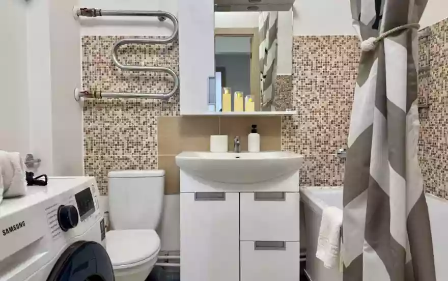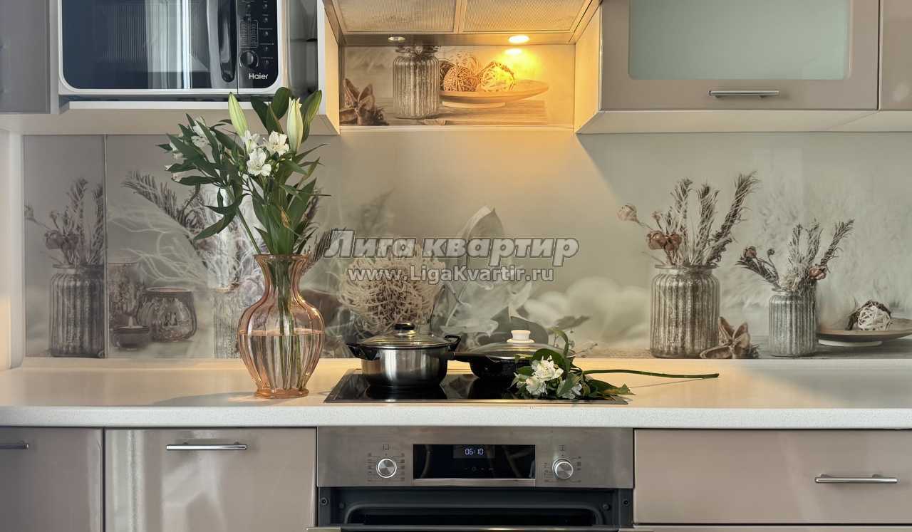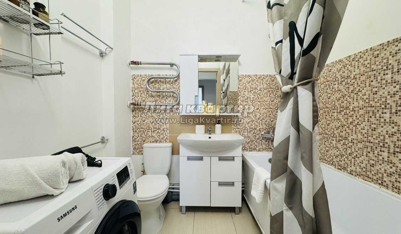 * техника: Smart-TV 55 дюймов, безлимитный Wi-Fi, холодильник, СВЧ, варочная панель, электрический чайник, стиральная машина, водонагреватель, фен, утюг, вентилятор