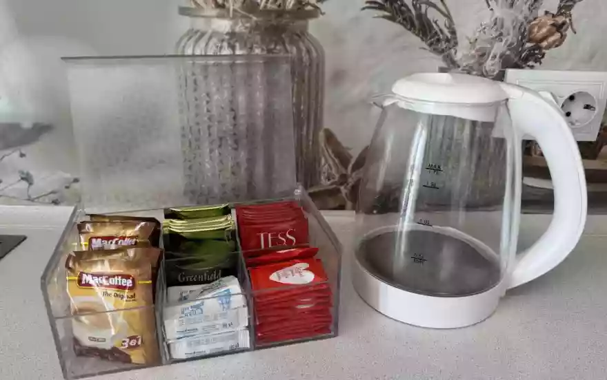 * приветственные стики чая, кофе, сахара, соль