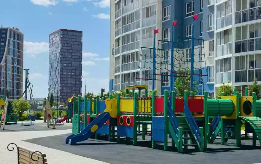 Под благоустройство и озеленение отведен тихий, уютный двор, на котором расположены зоны для активных игр, занятий спортом и тихого отдыха.