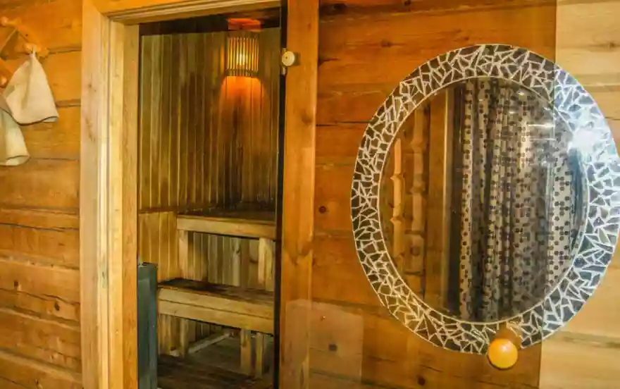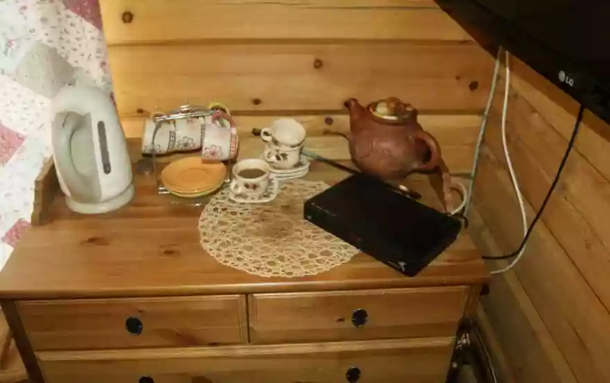 Отличная парилка на дровах, травяные чаи с медом.