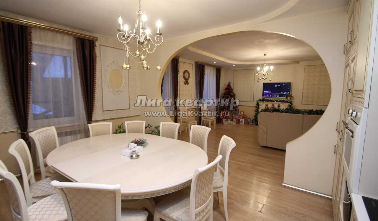 Обеденная зона: Большой круглый стол, комфортно размещающий до 12-15 гостей.
