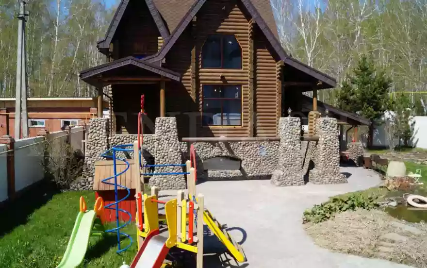 На территории коттеджа имеется детская площадка, пруд, качели, обустроена пикниковая зона, также большая парковка для Ваших автомобилей.