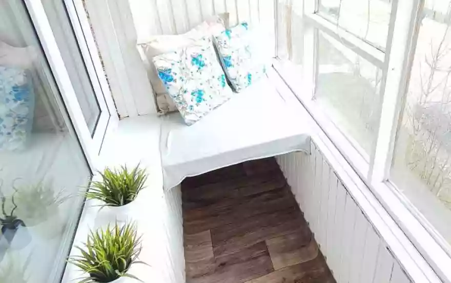 - На балконе — зона Chill Out с мягкими подушками с видом на красивейший Дворец Бракосочетаний.