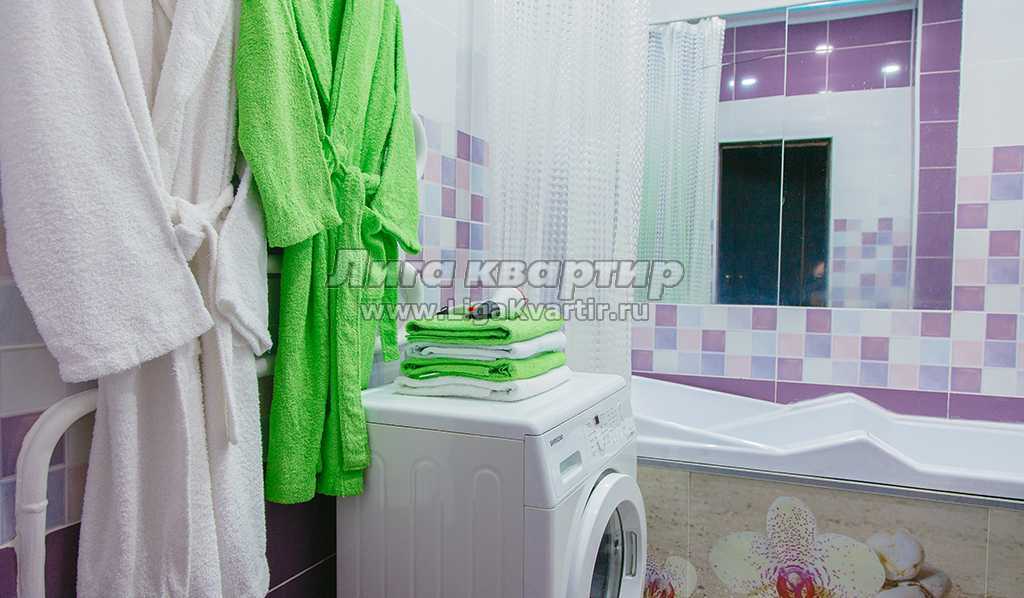 ✔ Санузел оборудован красивой новой сантехникой, сияющей чистотой. Для комплексного личного ухода гостей продумано все: от разных мелочей - до фена и стиральной машины-автомат.