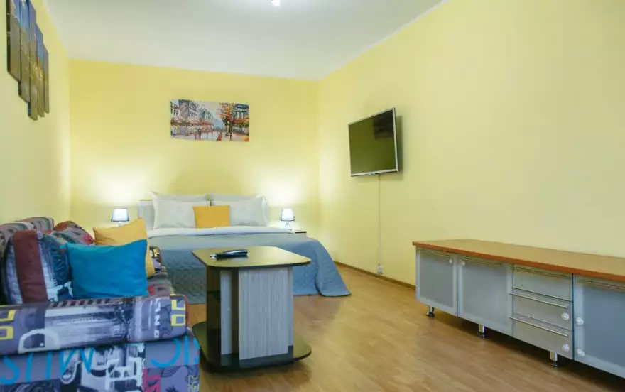 - Светлая комфортабельная однокомнатная квартира с двумя раздельными двуспальными местами, свежим ремонтом, просторной кухней, в хорошем районе с развитой инфраструктурой.