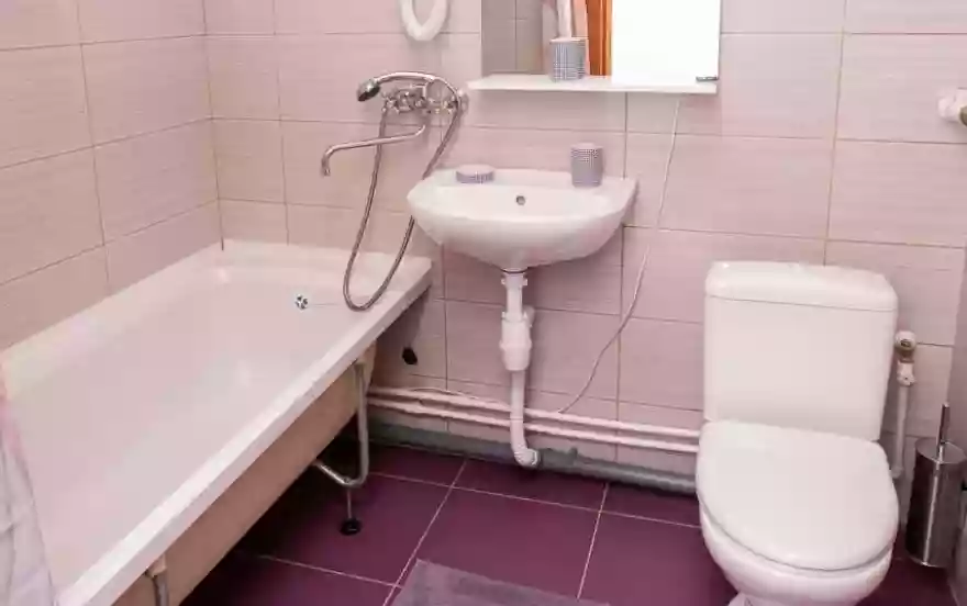 - Просторная ванная комната. Большая и глубокая акриловая ванна всегда сияет чистотой.