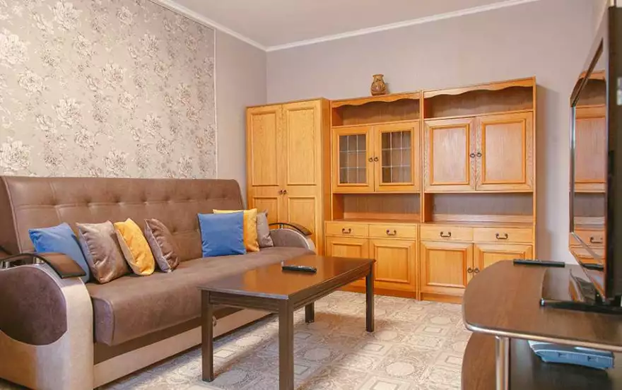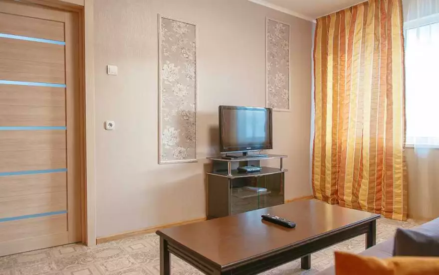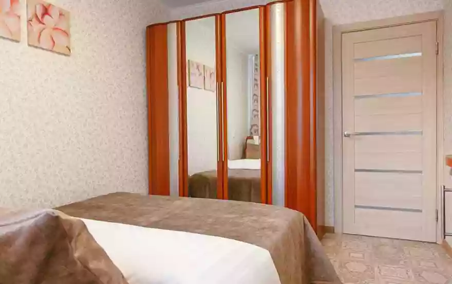 Две раздельные комнаты обеспечат качественный отдых каждому гостю. Отличная двуспальная кровать с ортопедическим матрасом и мягкий раскладной диван образуют удобные двуспальные места. Дополнительное полноценное спальное место обеспечит раскладное кресло. Досуговому времяпровождению способствуют кабельное телевидение и Wi-Fi. Для хранения вещей послужат вместительные шкафы, расположенные в каждой из комнат. В спальне оборудован приятный туалетный уголок, который также можно использовать в качестве удобной рабочей зоны.