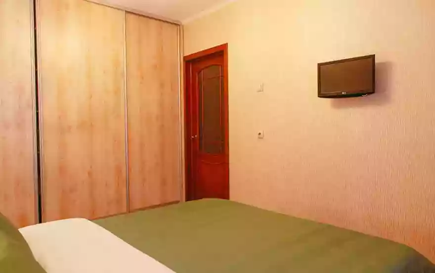 ✔ В спальне двуспальная кровать с хорошим ортопедическим матрасом гарантирует отличный отдых и сон. Плотные портьеры обеспечат светоизоляцию. На стене ЖК-телевизор для досуга. Вместительный шкаф купе послужит для хранения вещей. Атмосферу настоящего уюта и комфорта совершенствуют прикроватные тумбы со светильниками.