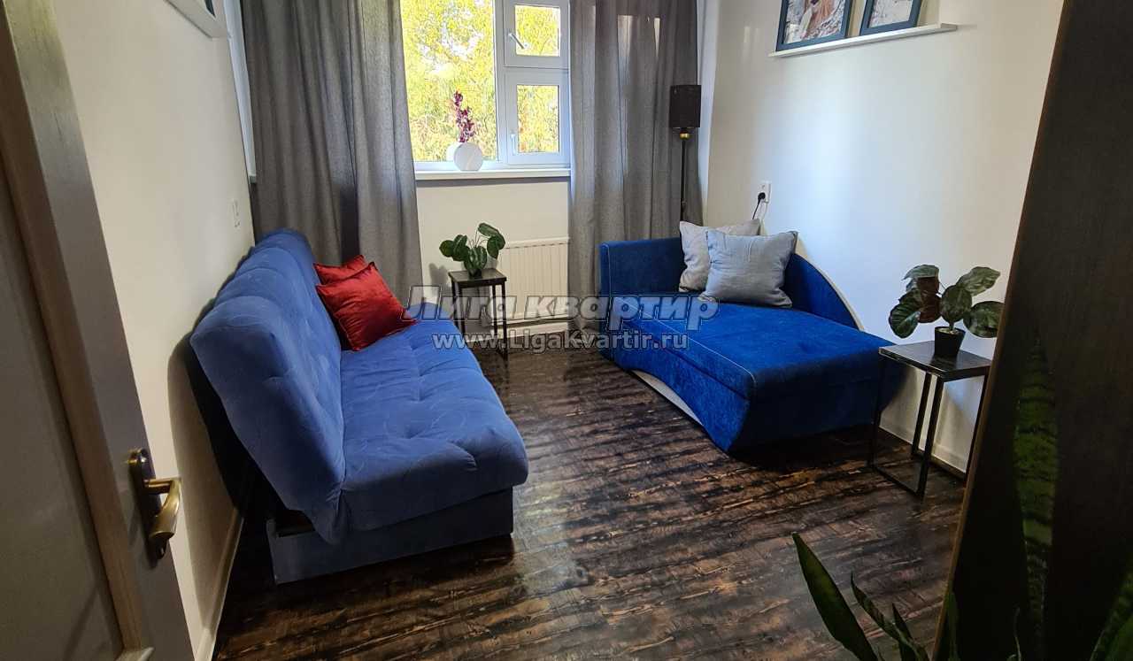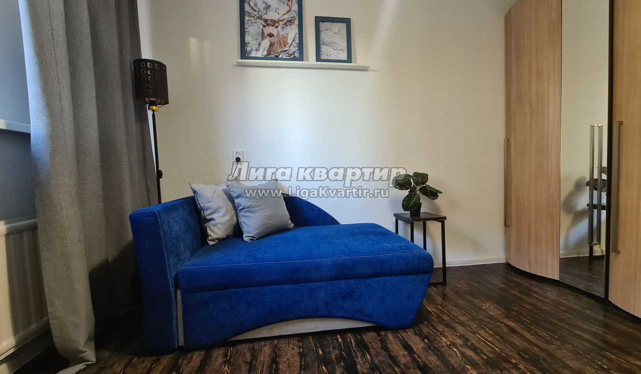 - В ближней спальне расположен двуспальный раскладной диван и раскладная софа. Здесь также имеются шкафы для хранения вещей и прикроватные столики. Плотные шторы на окнах создадут темноту.