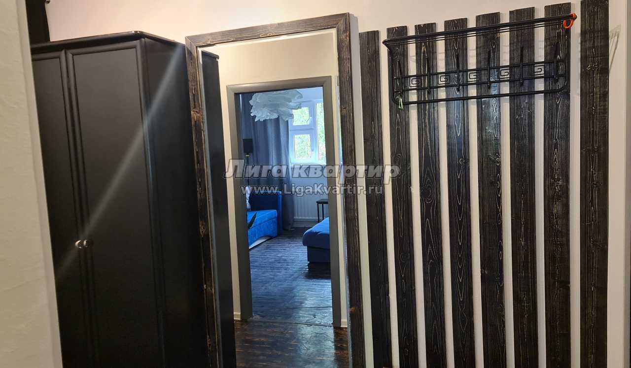 В коридоре удобная скамейка, шкаф для одежды, огромное зеркало в полный рост, А также удобная двухярусная сушилка для одежды, спрятанная за плотной шторой.
