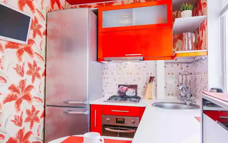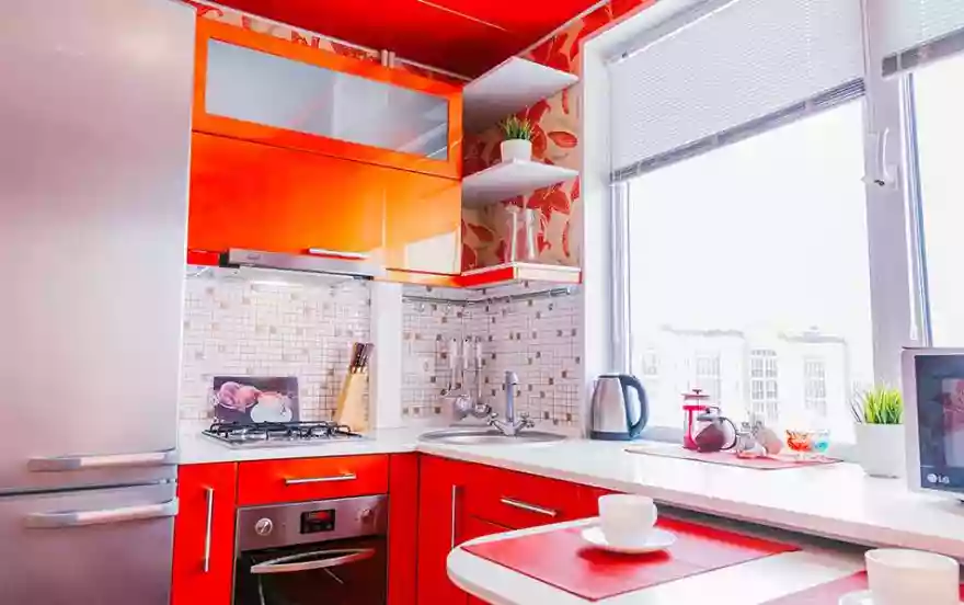- Яркая дизайнерская кухня вмещает в себя всю необходимую мебель и технику для полноценного домашнего питания во время длительного проживания гостей. На кухне также имеется плазменная панель.