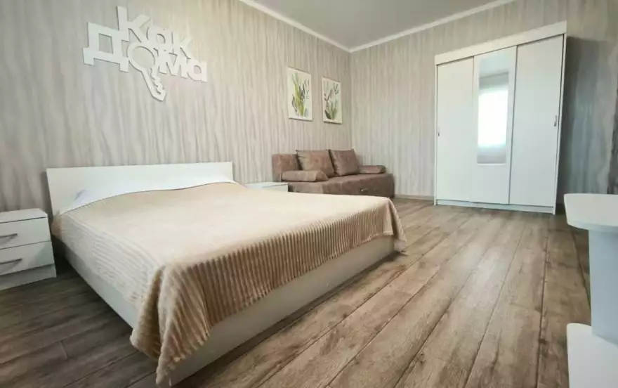 — Перед каждым заселением проводится тщательная влажная уборка с заменой постельных принадлежностей, полотенец, и дезинфекцией сантехники и столовых приборов. В квартире поддерживается идеальная чистота.