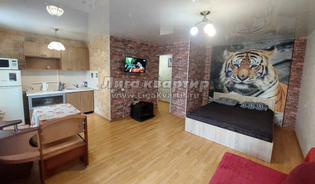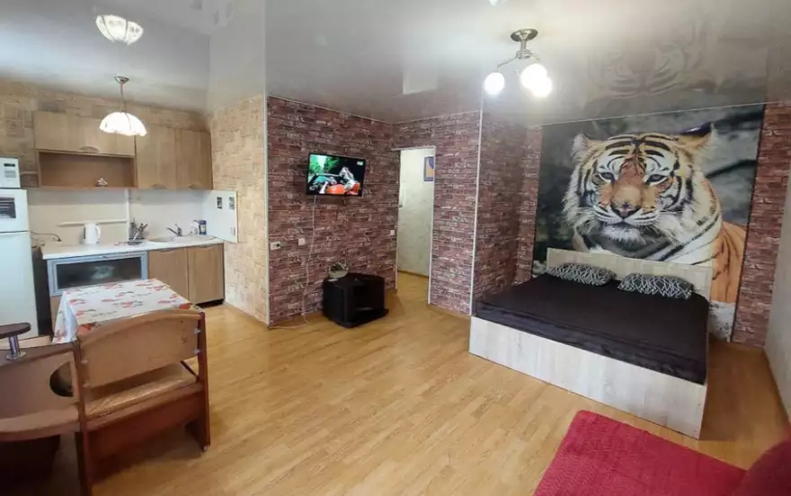 Mr Тигрович, в самом центре Перми. Брутальная квартирка с нежным сердцем. Ее любят снимать едущие в командировку мужчины, и влюбленные парочки. Самый центр Перми. Угол Ленина и Крисанова. Драмтеатр, торговые комплексы, магазины в доме и через дорогу.