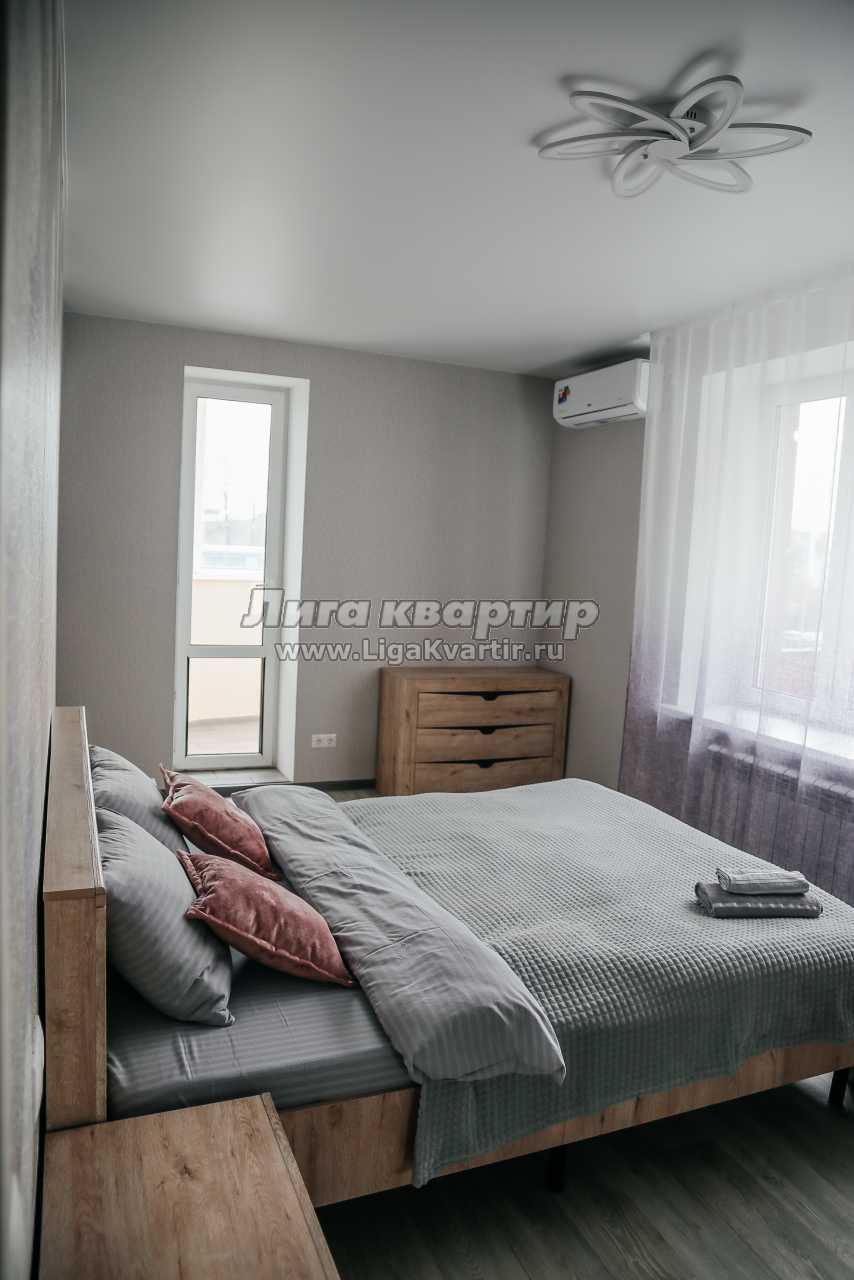 Квартира в новом доме с евроремонтом и кондиционером — современный комфорт для командировочных и гостей города. Три телевизора, два раздельных спальных места, отчётные документы и бесконтактное заселение 24/7.