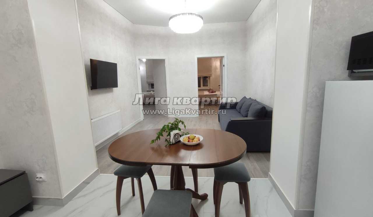 * Просторная кухня-гостиная – сердце квартиры! Большая, светлая, с полноценным оборудованием для готовки и уютным диваном, где так здорово собраться вечером. А еще – Smart TV для ваших любимых фильмов или вечерних посиделок.