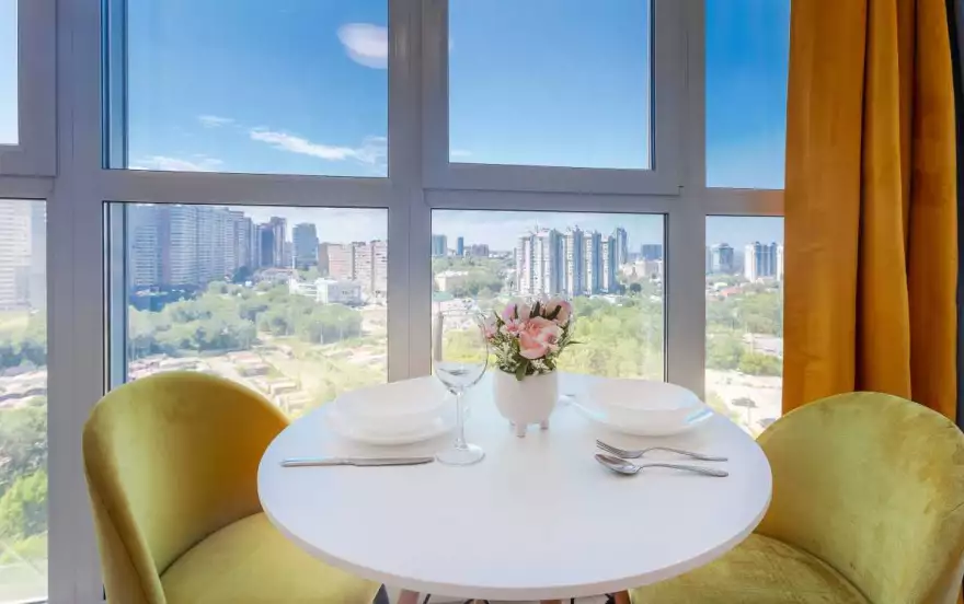 Панорамная студия с видом на Самару и Волгу.