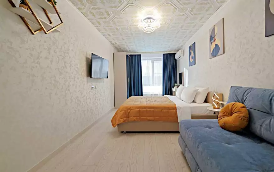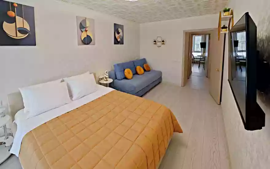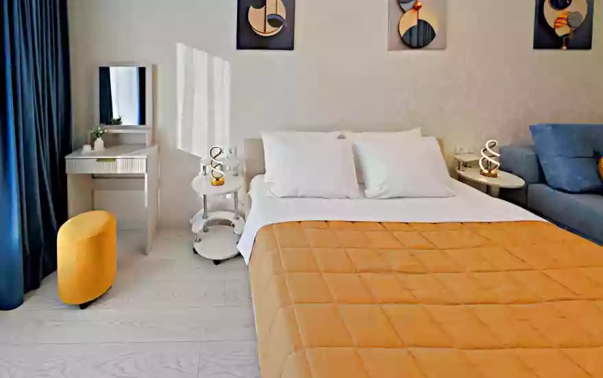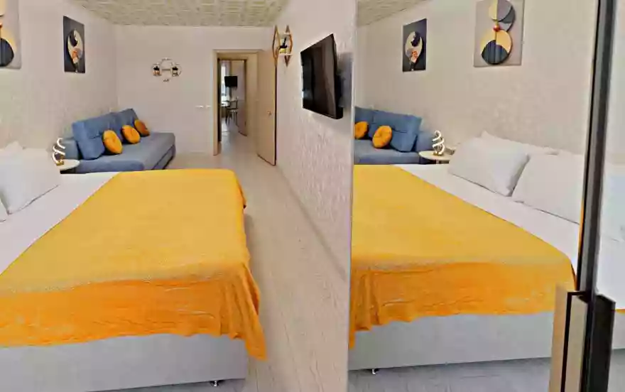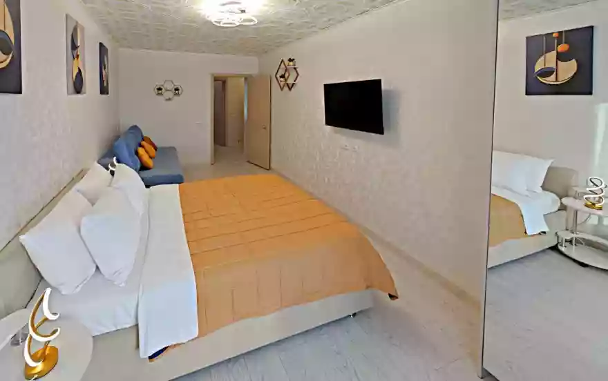 ☀️ ́ Апартаменты полностью оборудованы, есть все необходимое: кровать с комфортным ортопедическим матрасом, ️-удобный раскладной диван, шторы блэкаут, бесплатный Wi-fi, кабельное и смарт ТВ,вся необходимая посуда. Шампунь, гель для душа, мыло. Бытовая техника: стиральная машинка, микроволновка, плита с духовкой, эл.чайник, фен, гладильная доска, утюг.