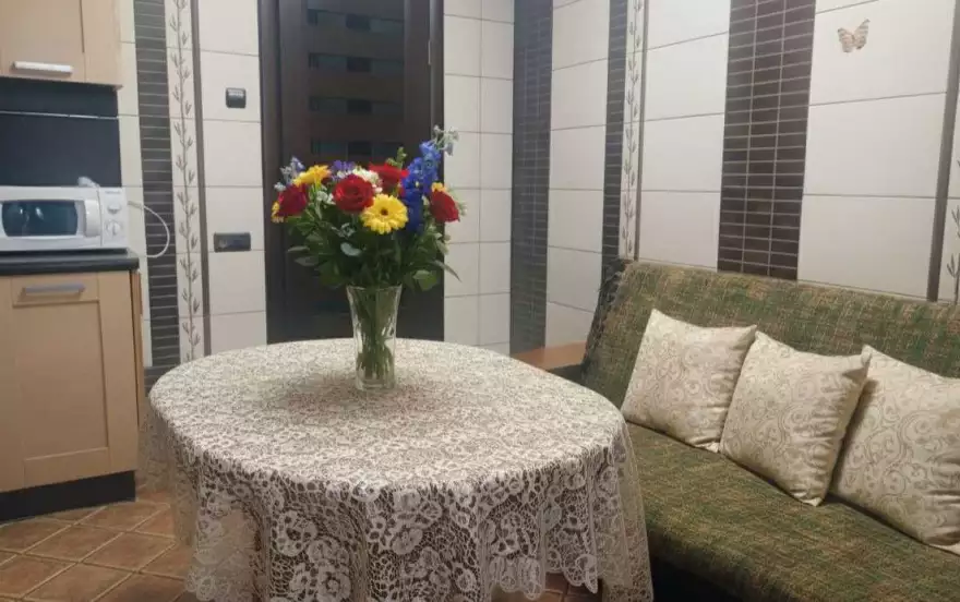 В квартире есть вся бытовая техника (ЖК телевизор, холодильник, микроволновка, кондиционер, стиральная машина, чайник, утюг, фен). Бесплатный интернет Wi-Fi и телевидение. Двуспальная кровать и два двуспальных дивана. Посуда, постельное белье, полотенца.