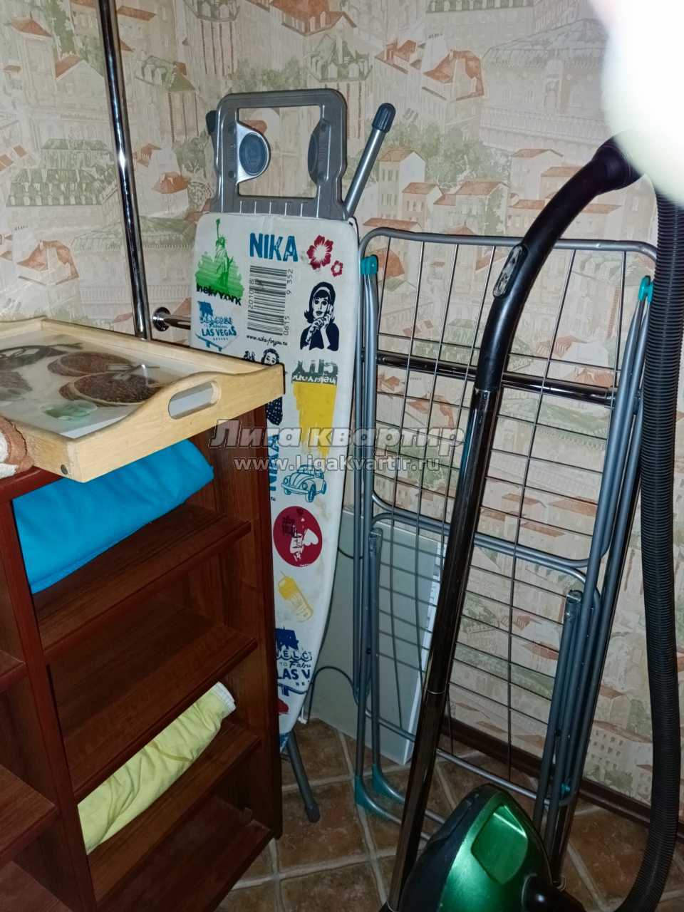 В квартире есть вся бытовая техника (ЖК телевизор, холодильник, микроволновка, кондиционер, стиральная машина, чайник, утюг, фен).