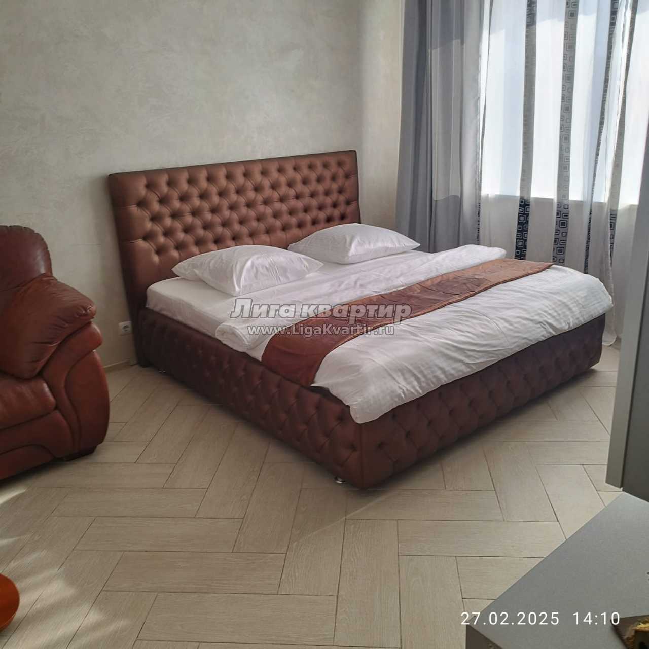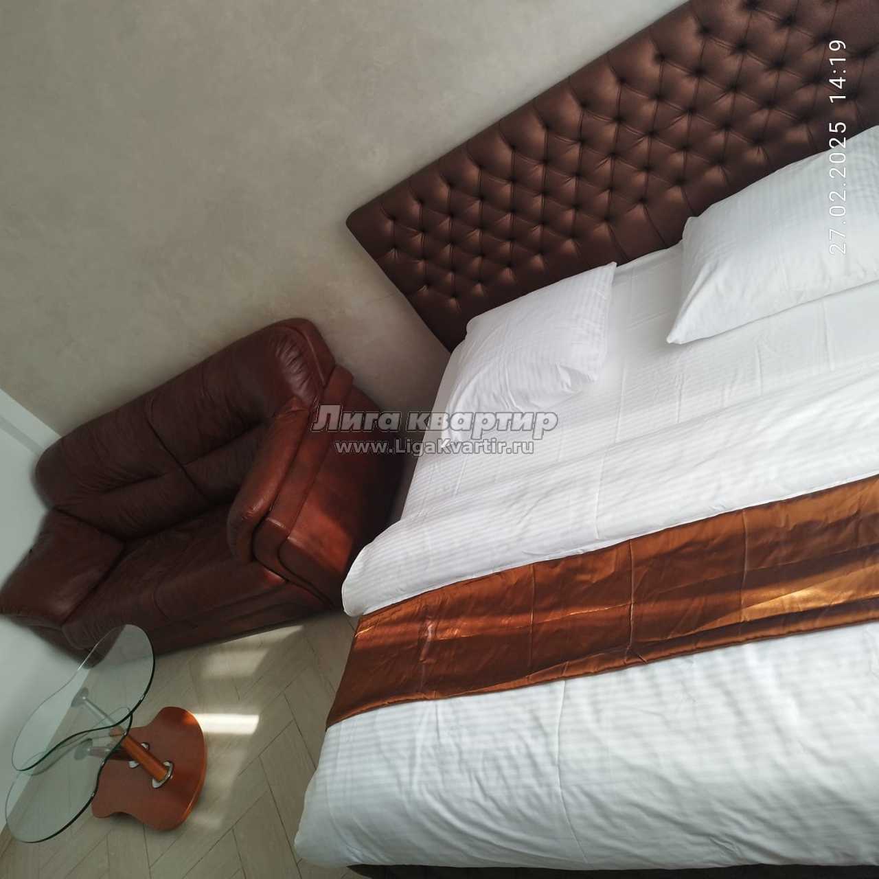 В этой квартире установлена дизайнерская кровать "Купол тысячелетия". Просторная, изысканная и комфортная кровать подарит чарующее времяпровождение и оставит приятные воспоминания.
