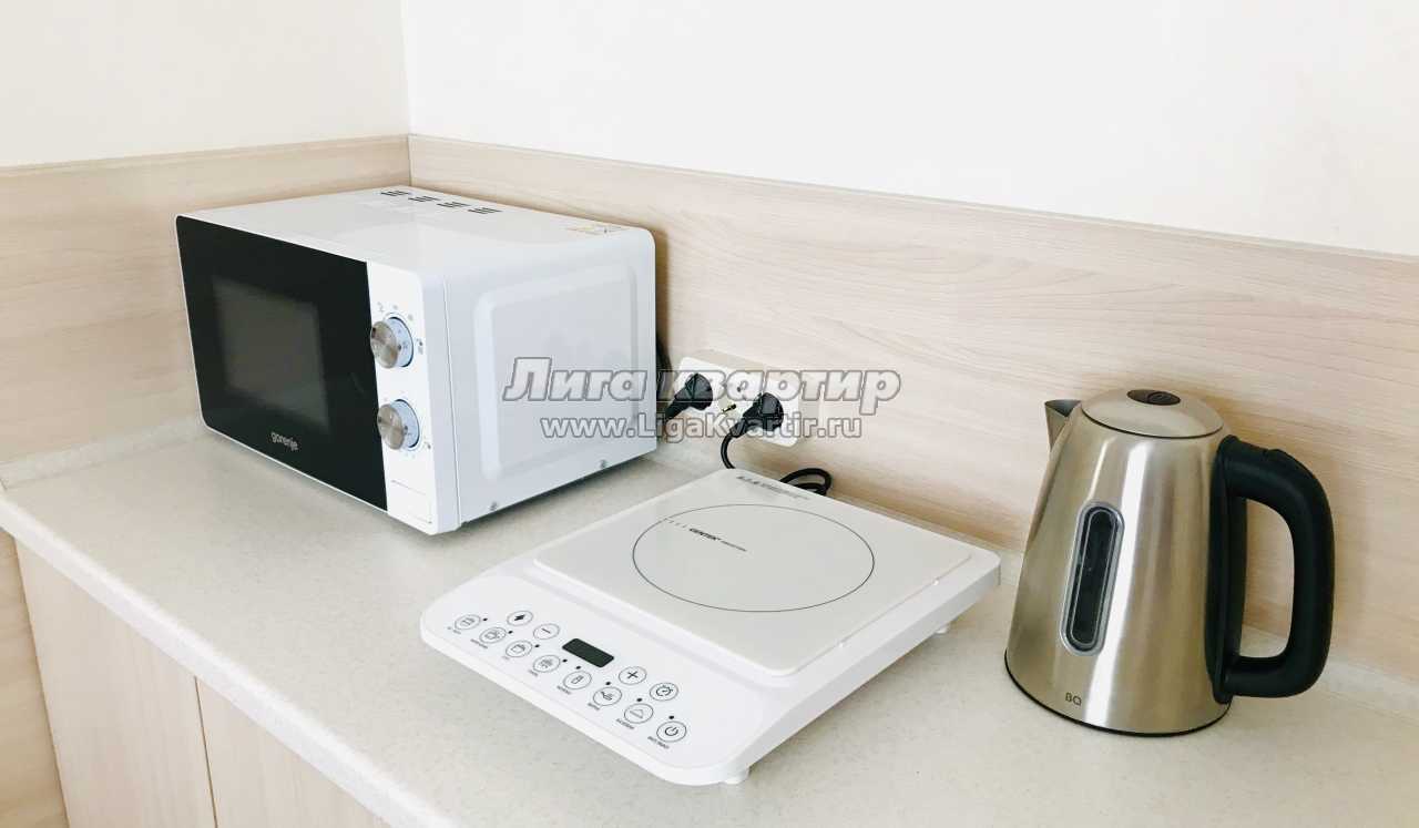 В квартире имеется: кондиционер, холодильник, цифровое ТВ, шкаф, кухонная зона, электрический чайник, индукционная плита, микроволновая печь, набор посуды, фен, удобная двуспальная кровать 160*200 с ортопедическим матрасом.