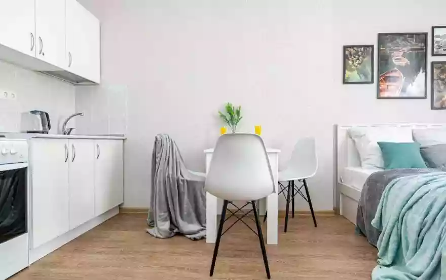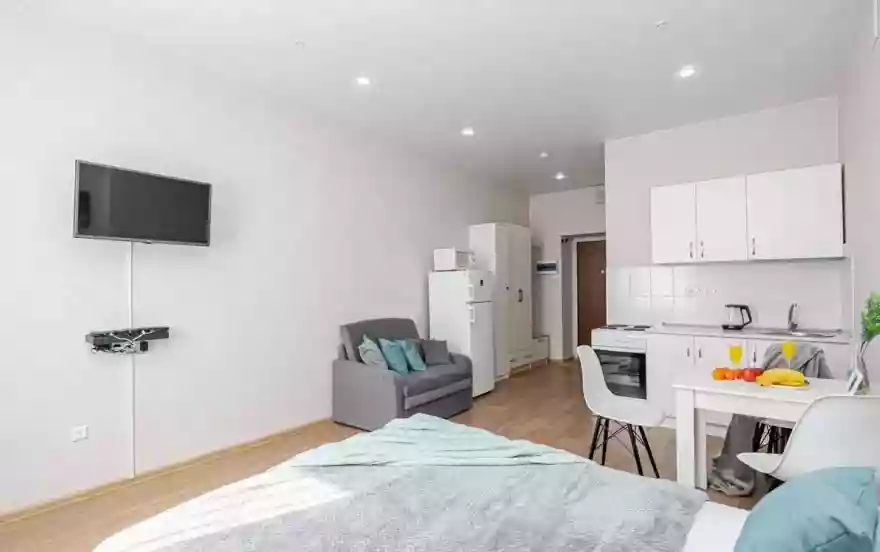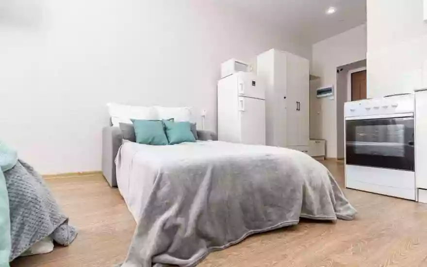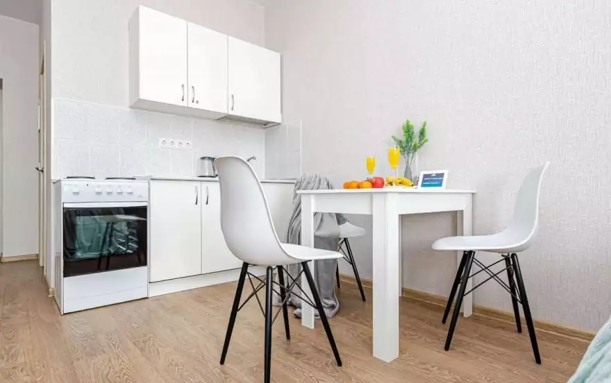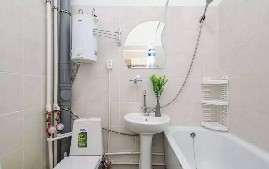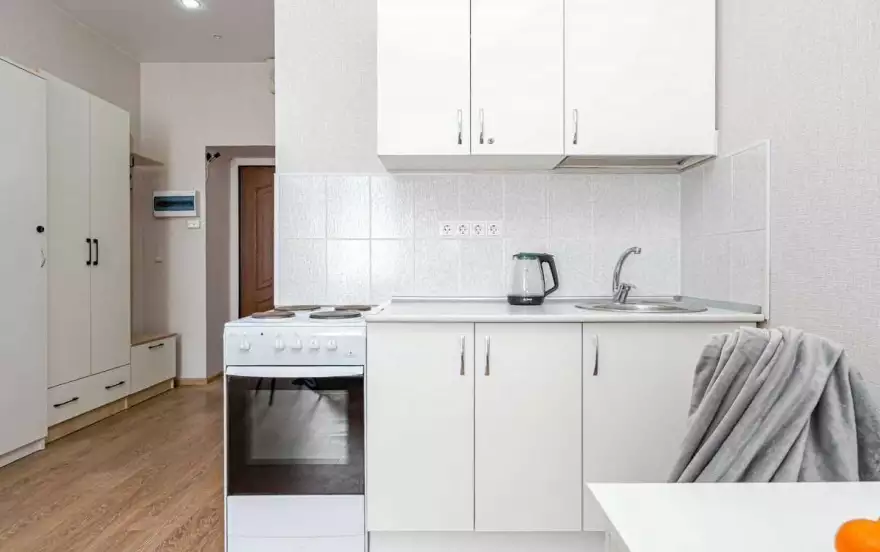 • Необходимая бытовая техника и посуда (стиральная машина, чайник, СВЧ, плита, духовка, холодильник, водонагреватель и столовые принадлежности).