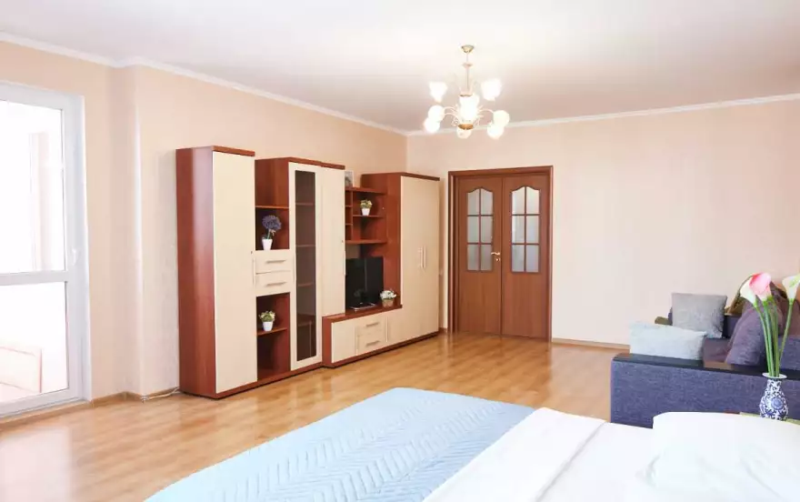 Квартира оборудована 3-мя большими 2-х спальными кроватями 2м*1.6м + 1 диван, 1 кресло-кровать. Новая современная бытовая техника (стиральная машинка, сплит – система в комнате, микроволновая печь, электрический чайник, фен, утюг, гладильная доска и сушилка), Wi-Fi 5G, цифровое телевидение и TV в каждой комнате. Для наших гостей всегда комплекты хлопкового постельного белья и полотенца, средства для личной гигиены, посуда для приготовления пищи.