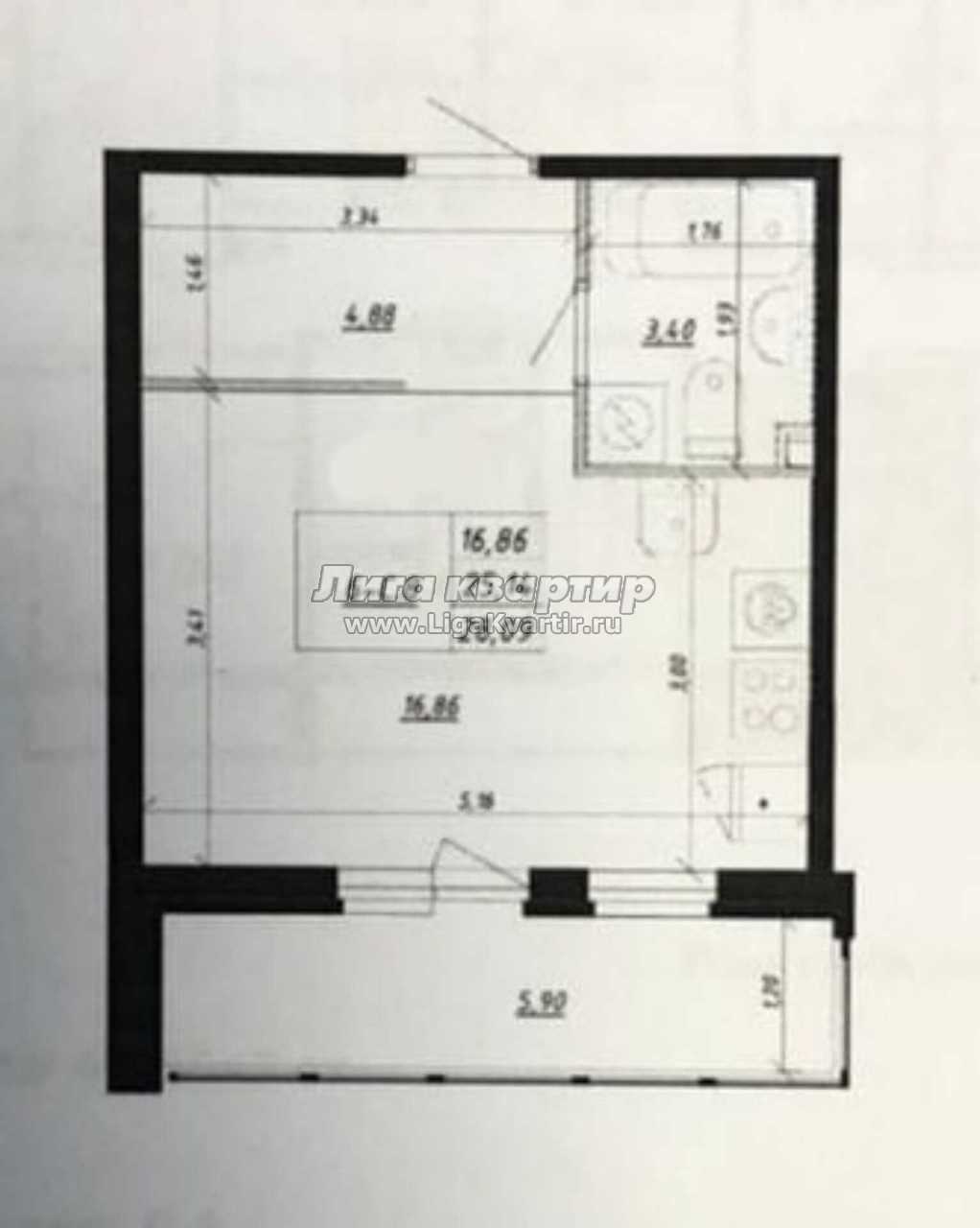 - Жилая площадь: 16.9 м²