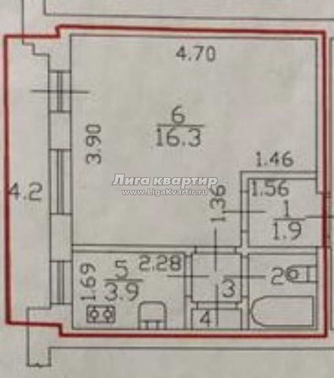 - Жилая площадь: 16.3 м²