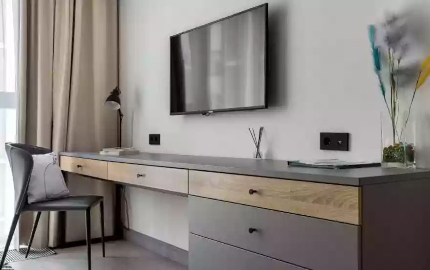 - Техника (телевизор, стиральная машина, индукционная плита, посудомоечная машина, капсульная кофемашина, холодильник, микроволновая печь, электрочайник, фен, утюг);