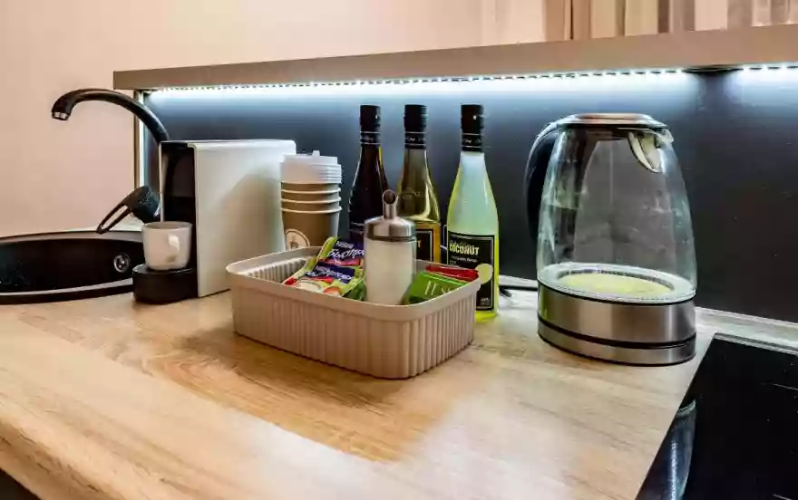 - холодильник, чайник, электроплита, микроволновка, капсульная кофемашина, посудомоечная машина
