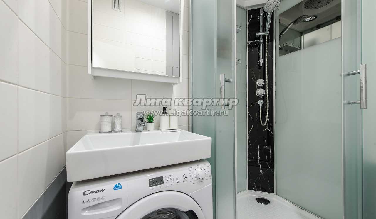 - удобная душевая кабина с тропическим душем