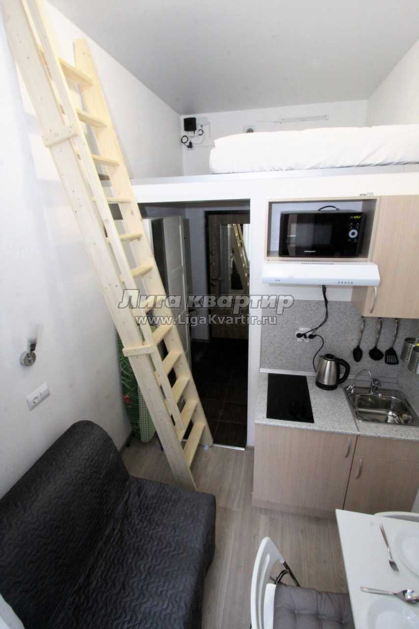 Студия в центре Санкт-Петербурга. До метро Чкаловская 600 метров. 15 минут пешком до Петропавловской крепости. Две остановки метро от Невского проспекта и Дворцовой площади. В районе очень развитая инфраструктура, вблизи расположены магазины и многочисленные кафе, бары и рестораны.