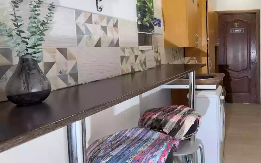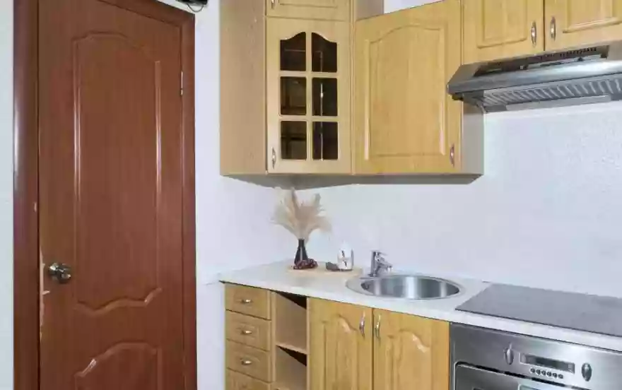 - Кухня оборудована техникой и посудой.